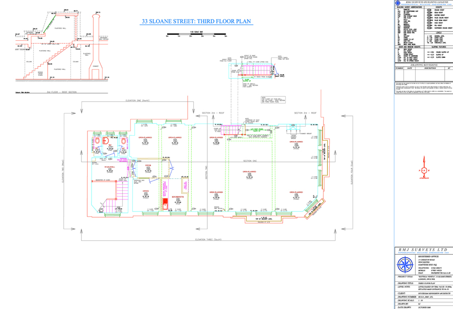Measured Building Survey: 3rd Floor, 33 Sloane Street, London. - For Gucci Fashions