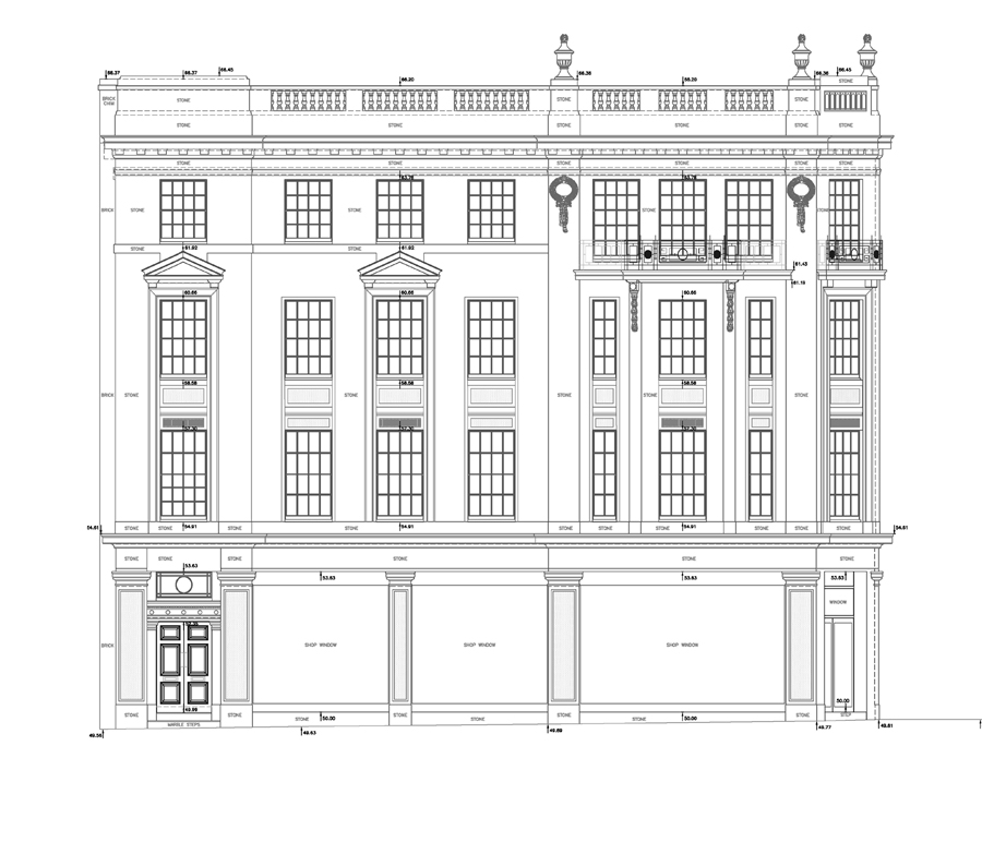 Measured Elevation Survey: 33 Sloane Street, London. - For Gucci Fashions